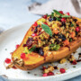 This elegant vegan main course combines the earthy sweetness of roasted acorn squash with a savory wild rice stuffing, infused with aromatic sage and complemented by the natural sweetness of pears. The dish is finished with a tangy balsamic glaze, creating a harmonious balance of flavors and textures.